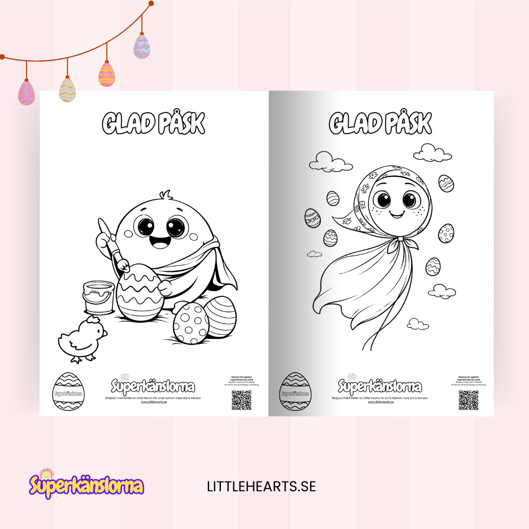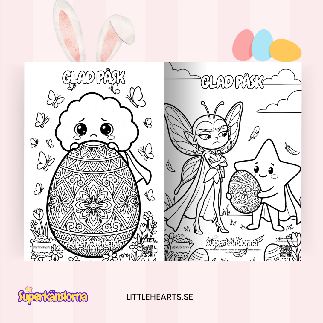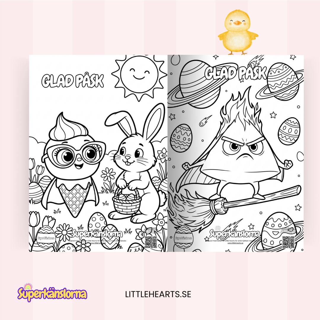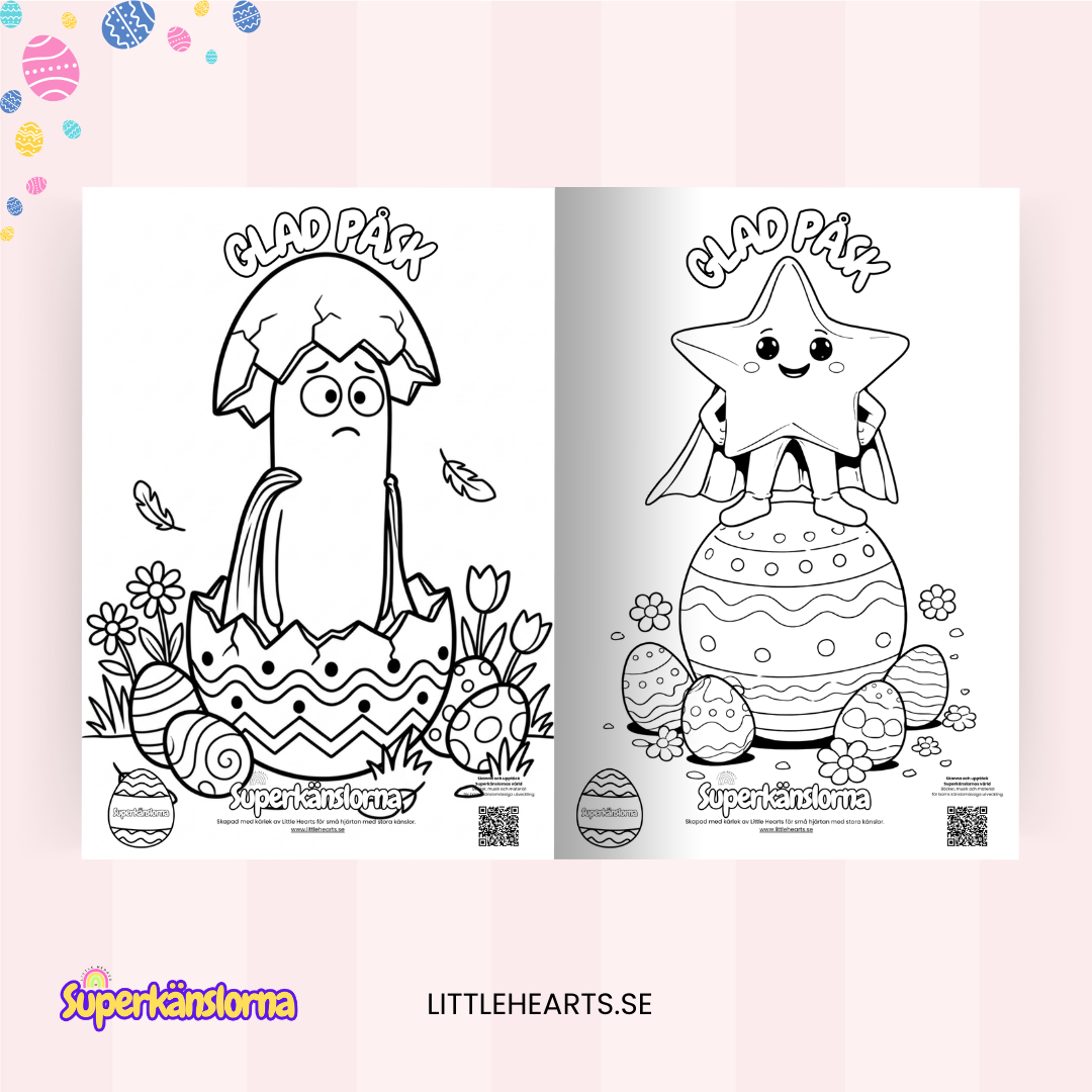 I denna påskedition får barn följa sina känslohjältar i ett lekfullt påsktema fullt av ägg, vårkänsla och fantasi. Perfekt att skriva ut och färglägga hemma, i förskolan eller i klassrummet.
